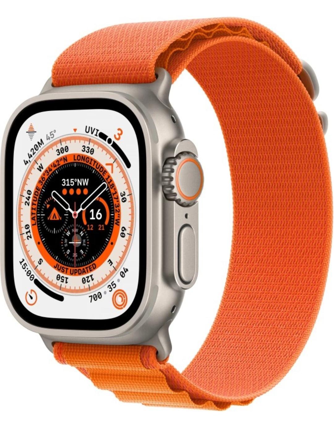 APPLE Watch Ultra GPS + Cellular - ECG App, Temp sensor, Blood oxygen, Fall Detection (Orange Alpine Strap, Large)