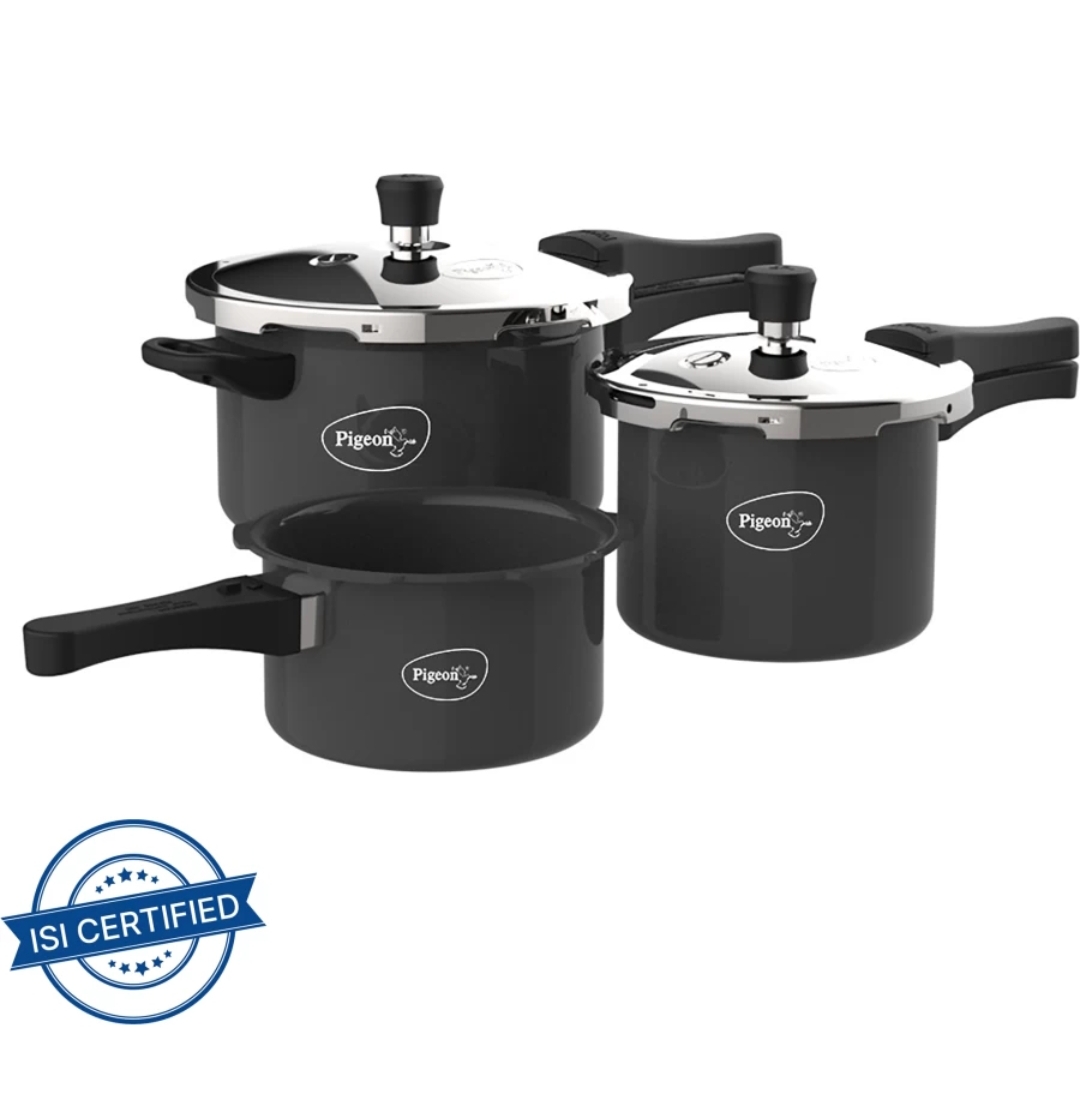 Pigeon by Stovekraft Limited Outer Lid 1.5 L, 2.5 L, 4.5 L Induction Bottom Pressure Cooker (Hard Anodized)